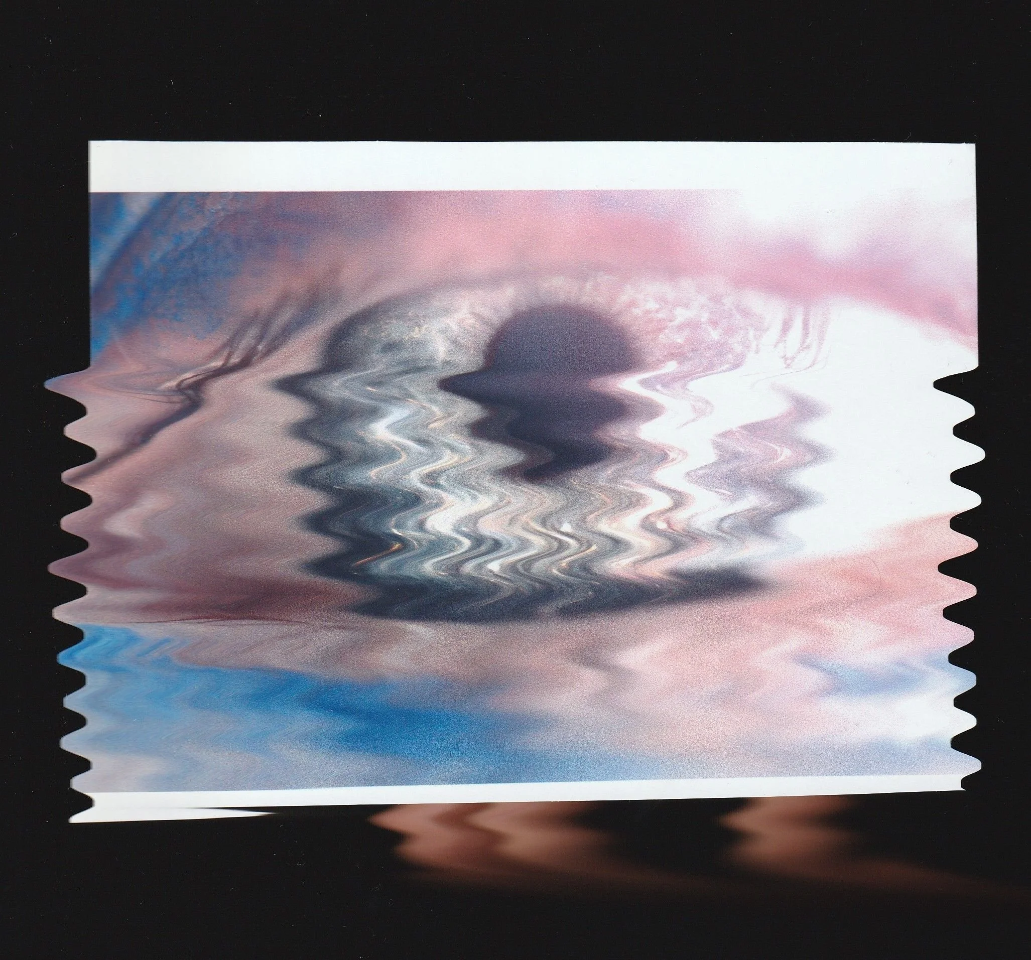 Experiments with distoring the eye photograph using scanography; this caused issues with overall image quality due to printer limitations